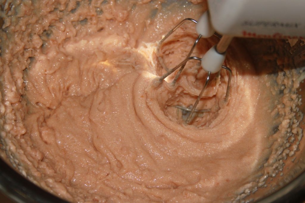 تخلط على سرعة منخفضة بمضرب كهربائي لمدة دقيقتين لتفتيت صفار البيض وبروتينات الحليب.