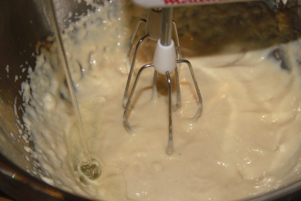 نضيف باقي الزيت على شكل هزيلة ، بلطف ، مع الرفع تمامًا كما هو الحال مع المايونيز.