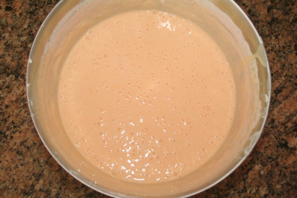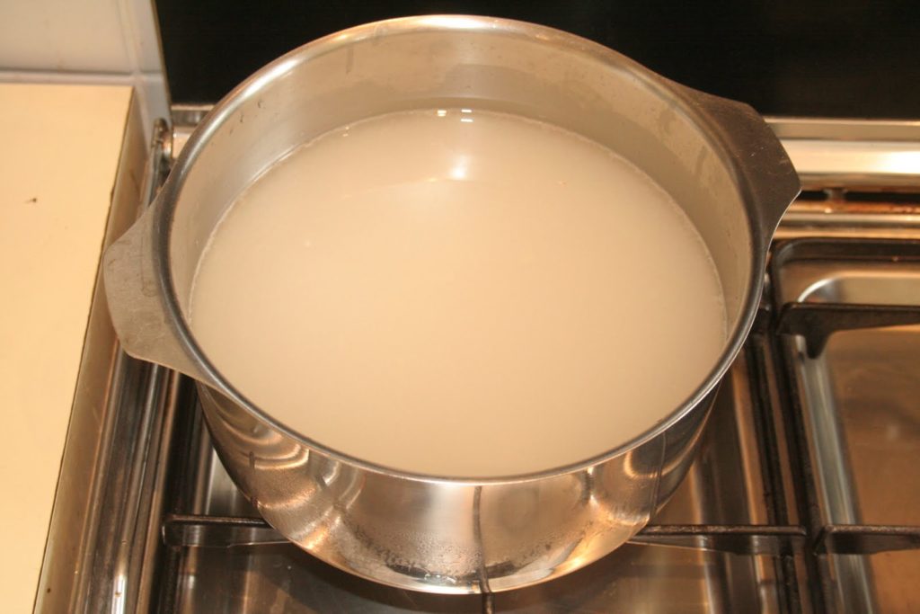 يسخن ويخلط جيدا لإذابة الخميرة.
