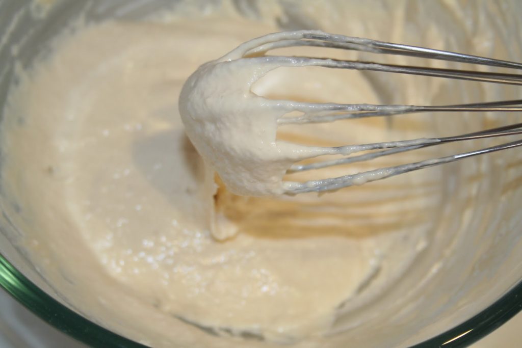 خفاقة يدوية. حتى لو بدت العجينة متكتلة في البداية ، فإنها ستفعل