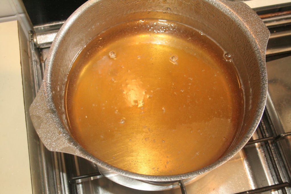 العسل عن طريق وضع السكر والماء في قدر كبير.