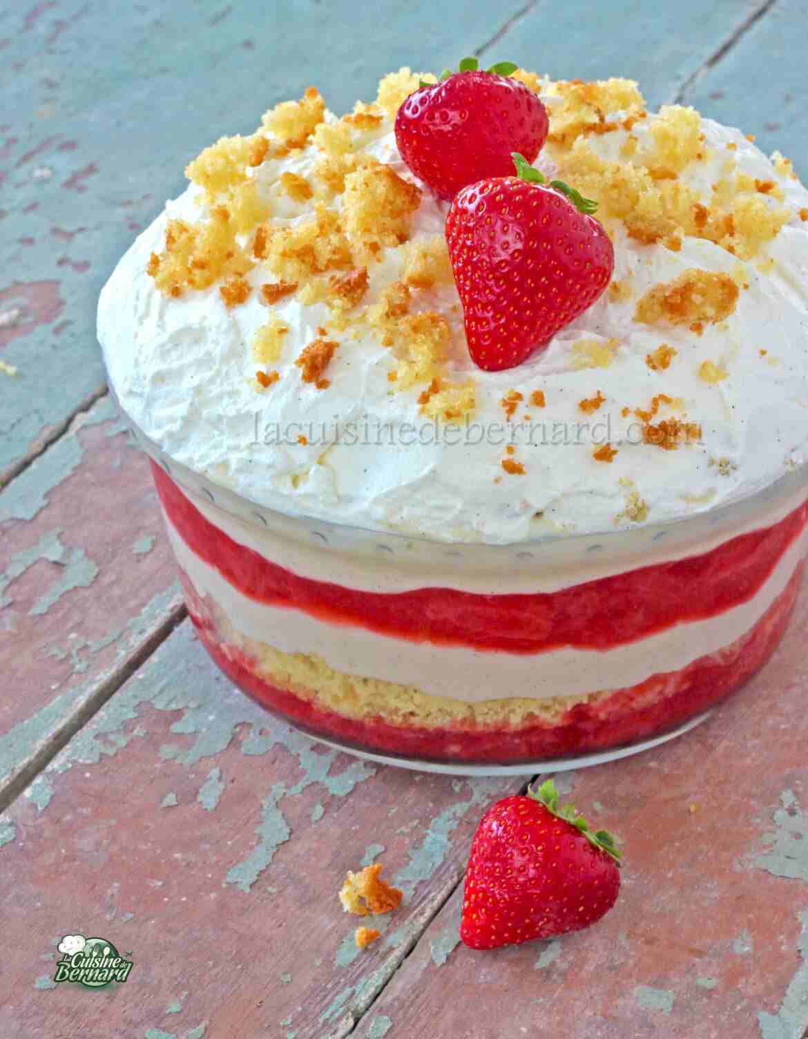 حلوى لا تقاوم على الإطلاق، طازجة للغاية وغير حلوة للغاية تحتفي بالفراولة من زاوية مختلفة تمامًا! التريفل هي حلوى إنجليزية تُقدم في طبقات في وعاء شفاف. لقد استوحيت هذا الإصدار اللذيذ من المذاق الذي تذوقته في لندن مؤخراً. ستجد طبقات من الكعكة الإسفنجية والكاسترد وكوليس الفراولة والكريمة المخفوقة. قم بتحضير الكعكة في اليوم السابق للاستفادة القصوى من قدرة الكعكة على امتصاص النكهات!