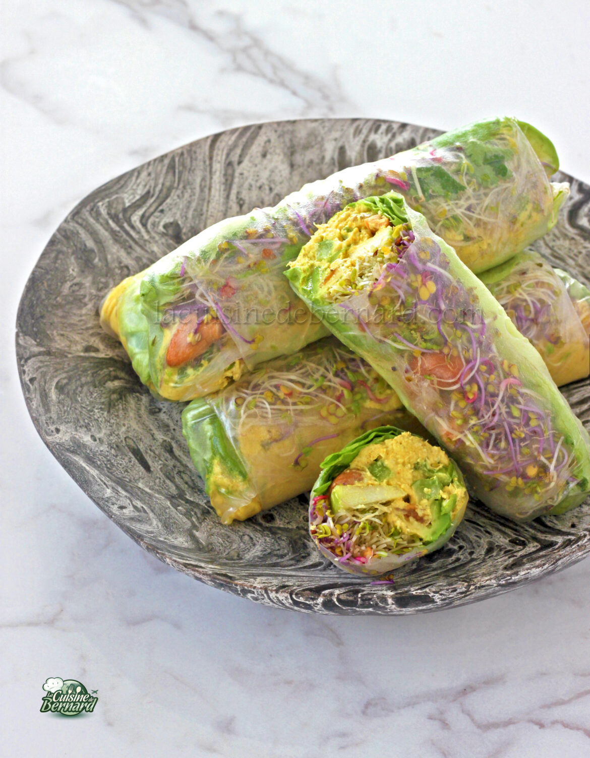 وبما أنني أحب لفائف الربيع التقليدية وأصنعها كثيراً، فقد أردت أن أغيّر من طريقة إعدادها وأقوم ببعض التنويع، مع إعطاء نفسي انطباعاً بأن الطقس بدأ للتو في الدفء! إليك نسخة من هذا الطبق مع كاري الدجاج والسلطان والتفاح الأخضر والأفوكادو والكاجو والكزبرة مع السلطة والبراعم المشكلة. الطريقة المثالية لملء الفراغ بالألوان والنكهة والنضارة!
