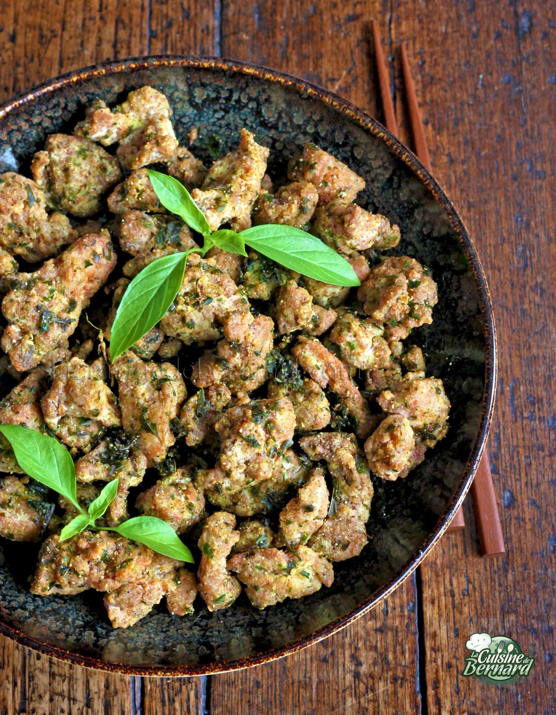 ها هي الوصفة الثانية خطوة بخطوة من الفيسبوك الخاص بي مباشرة يوم الاثنين 5 يوليو 2021 للسياحة التايوانية ! سأضع الفيديو أيضًا على إعادة التشغيل. فشار الدجاج التايواني المقرمش مع الريحان التايلاندي هو أمر رائع! الملمس لا يصدق والنكهات غير متوقعة. لتحضر مرارًا وتكرارًا من أجل فاتح للشهية أو كطبق رئيسي ، تقدم جميعها مع القليل من الأرز السوتيه ، على سبيل المثال. بفضل نشاء التابيوكا ، سيبقى هذا الدجاج مقرمشًا حتى اليوم التالي ...