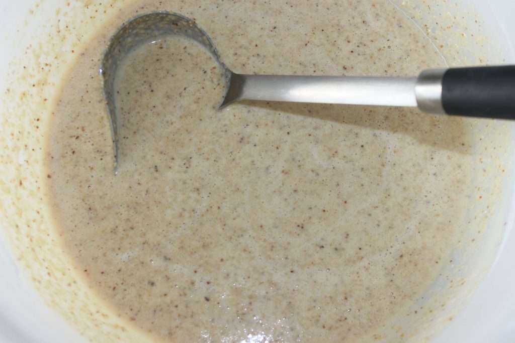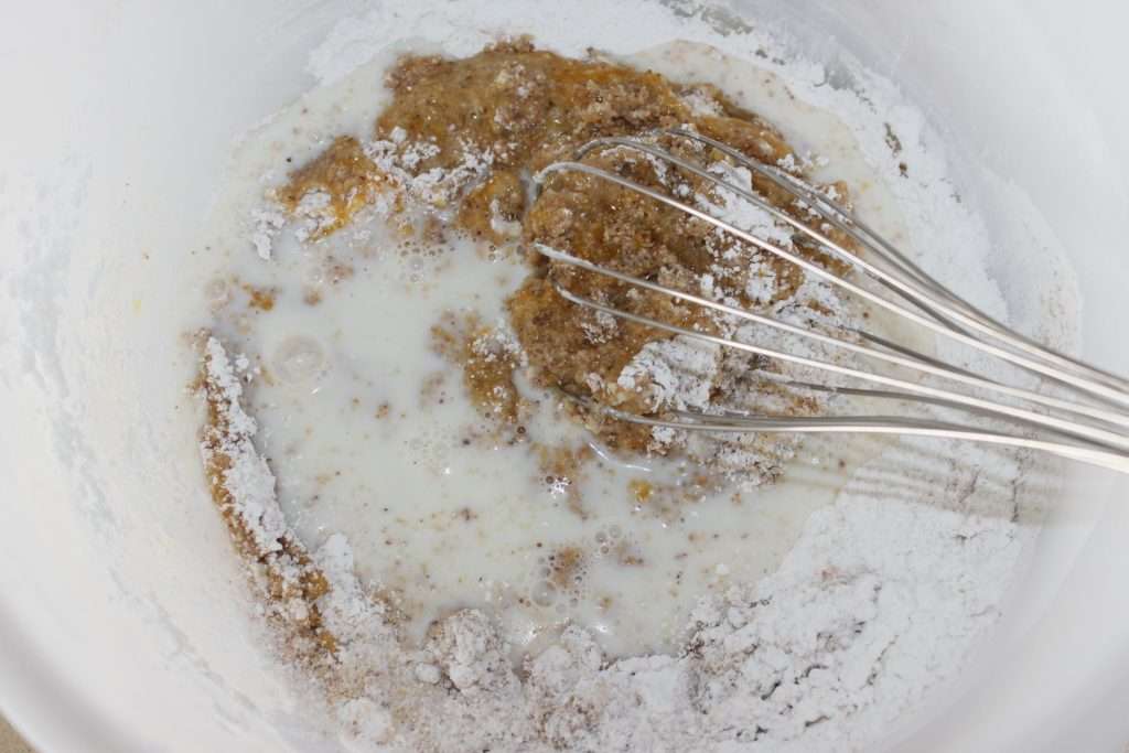 Whisk together while pouring in the milk.
