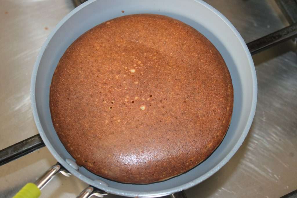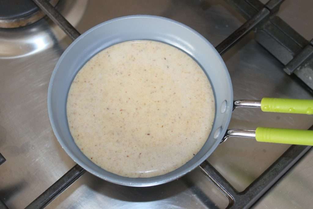 Turn over gently with a spatula. The underside will color well thanks to the hazelnuts. Let cook just a few seconds on the other side.