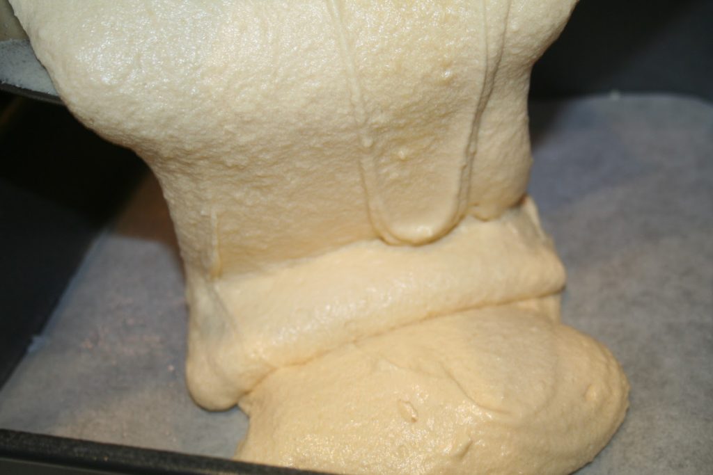 Now mix on high speed for 2-3 minutes to aerate the dough. It whitens and becomes more voluminous.