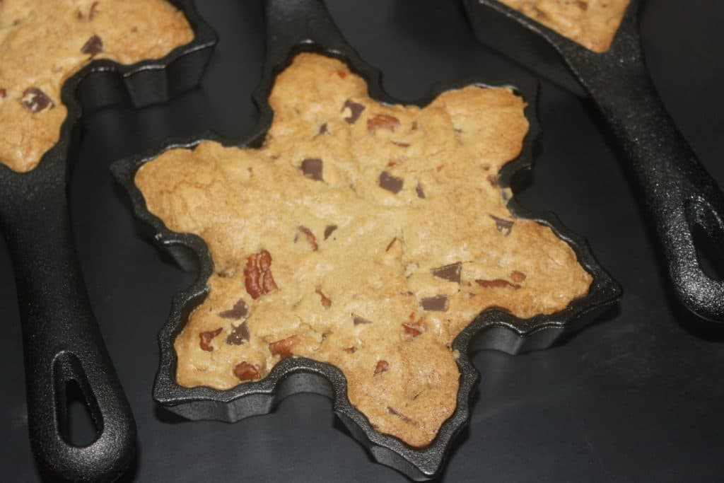 - Heat the oven to 160°C and bake just until the surface seizes. The edge should brown slightly and that's it. So for baking time, it can be 12 minutes for a classic cookie to 25 minutes if you put the whole dough in a cake pan.