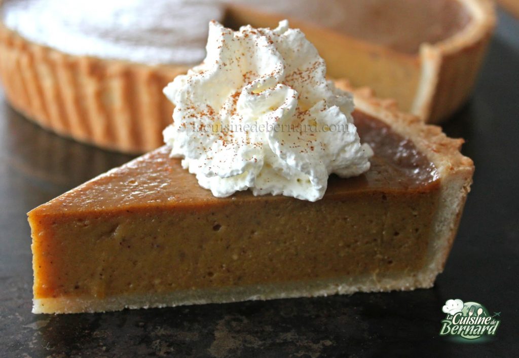 For me, this is one of the most representative pies of the fall season! Of North American origin, it is traditionally made for Thanksgiving and Christmas. Its spicy scents will perfume the whole house while it is cooking. This dessert, served with a touch of whipped cream is totally irresistible. I first tasted pumpkin pie a long time ago, in an American family, and I found the consistency very (too?) surprising. Coming back to it today and making it myself from fresh pumpkin, I’ve become a total fan!