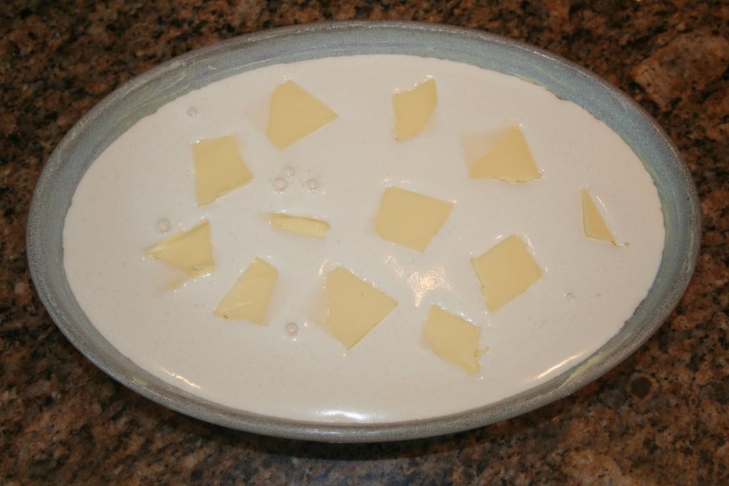 Añadir el resto de la mantequilla salada, cortada en tiras finas, a la superficie de la masa…