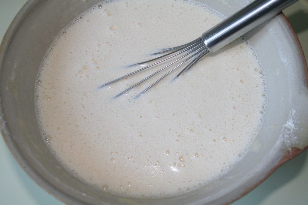 Después de mezclar, añadir el resto de la leche. De este modo, se evitan por completo los grumos. El resultado es una especie de masa para panqueques.