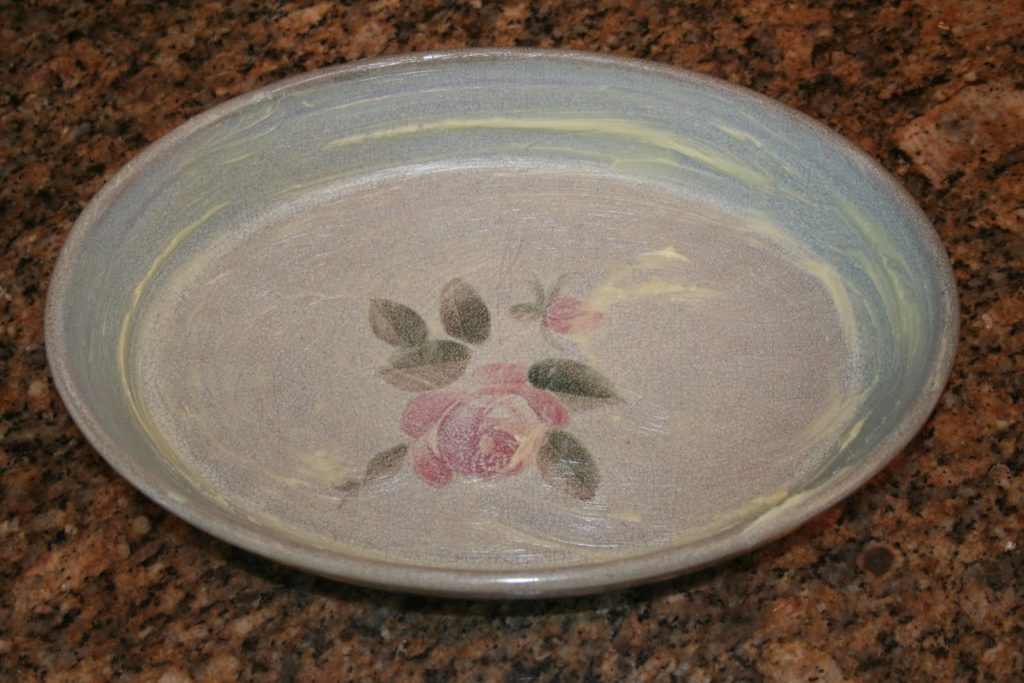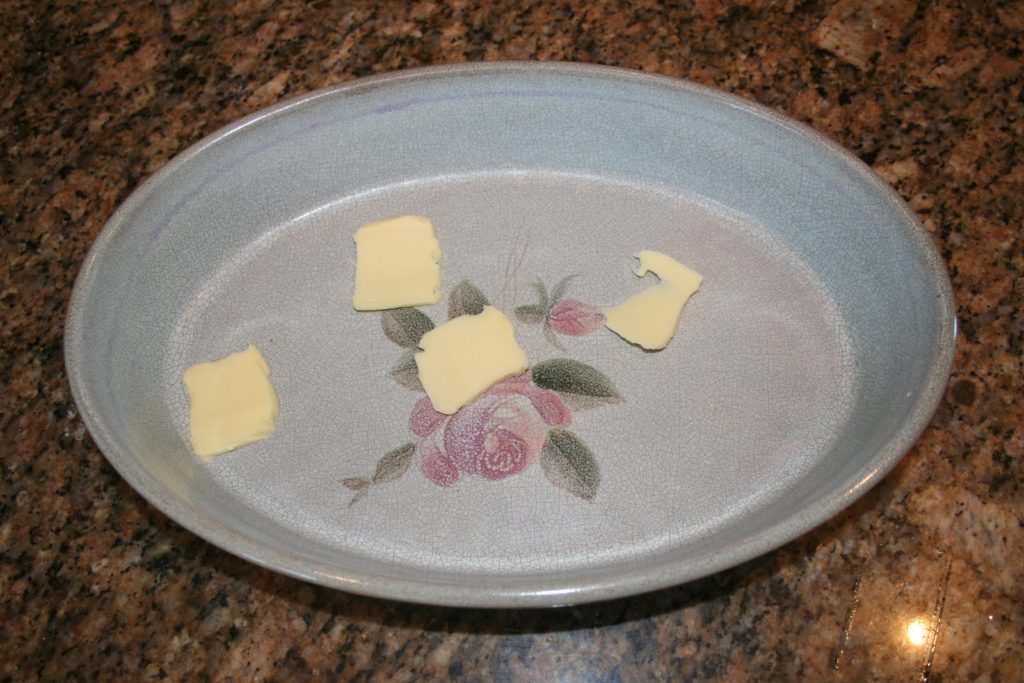 Poner aproximadamente un tercio de los 50 g de mantequilla salada en una cazuela de barro.