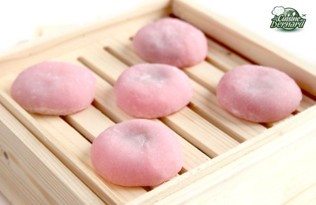 He probado varios métodos antes de llegar a este, que parece el más sencillo: una masa preparada en el microondas en pocos minutos, en la que se introduce un relleno congelado para facilitar su manipulación. Haciendo una bola presionando la masa con una mano (a la manera de algunas pastas magrebíes). A continuación, propongo un método de moldeado que creo que es más fácil que las versiones en las que se aplana la masa con un rodillo para rellenarla. Si lo hace, se notará el cierre y se añadirá demasiado almidón innecesariamente. Al hacer esta pequeña bola, será muy fácil introducir la bola de masa congelada. También os aconsejo que trabajéis por parejas porque si tenéis que lavaros las manos cada vez (el mochi puede romperse por un trozo de masa pegado en la mano) ¡se os hará el trabajo demasiado largo y peligroso! Cada persona tendrá una tarea dedicada: uno hará las albóndigas, mientras que el otro las rellenará, manteniendo las manos limpias (para enrollarlas bien antes de dejarlas enfriar). Una especie de trabajo en cadena de montaje. Será aún más fácil con tres personas: una hace la bola, la otra la rellena y la tercera le da forma para obtener un bonito resultado. ¡Así que esta será mi primera receta de equipo! ¡Consigue tus ollas y sartenes!