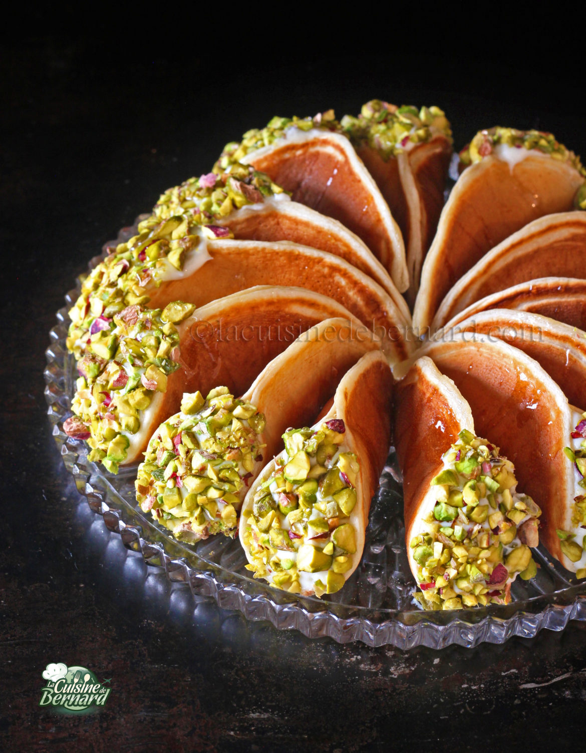 Qatayef, o atayef (que no debe confundirse con ktayef, hojaldre hecho con cabello de ángel) es un delicioso panqueque relleno de crema ashtalieh, agua de rosas y azahar y pistachos tostados triturados. Todo se sirve con un almíbar aromatizado y da un resultado final no muy dulce. Este pastel se encuentra en el Líbano, pero también en Egipto y otros países del Levante. Esta presentación con la mitad de la tortita doblada para hacer un cono se llama assafiri.