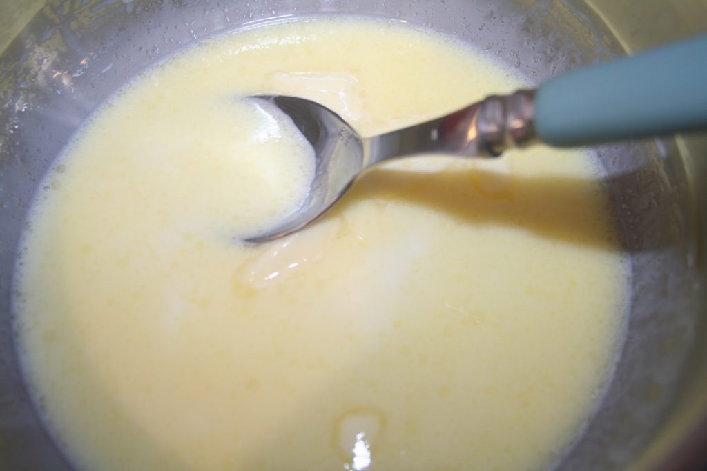 Empezar a mezclar para que quede cremoso. Añadir la harina y mezclar lo justo para incorporarla, pero no más.