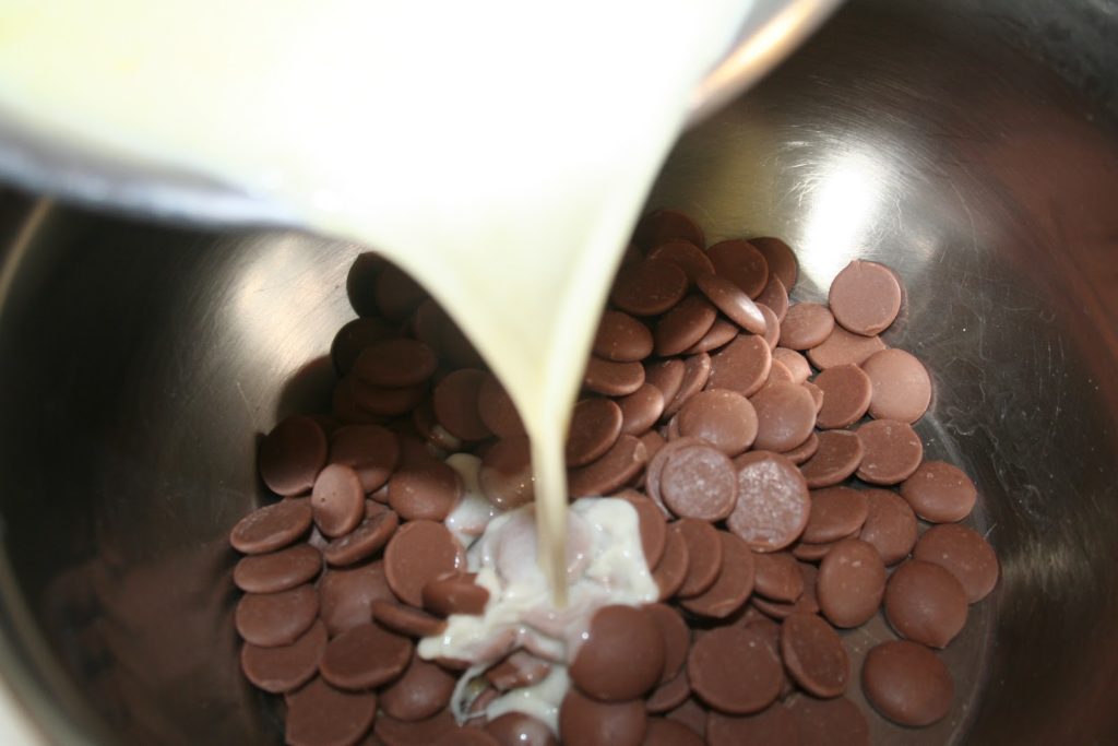 Cuando el ganache esté listo y comience a cristalizar, colóquelo en una manga pastelera.