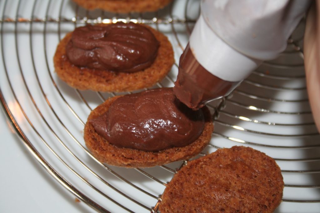 He aquí un pequeño bizcocho que gustará a más de un lector. Se trata de una masa quebrada compuesta por almendras y gavotas trituradas, que aportan un crujido extra para subrayar el dulzor de la ganache de chocolate. Una galleta perfecta para el té o para mojar en el café.