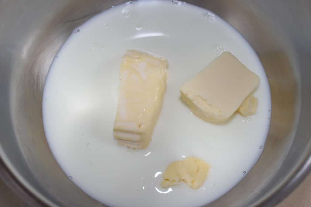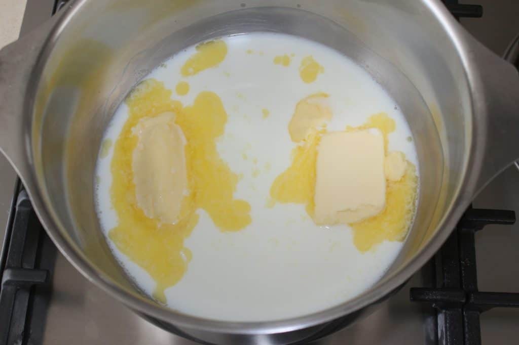 - Placez la fécule et le sel dans un récipient ou dans un robot type KitchenAid.Versez le lait et mettez le beurre dans une casserole.