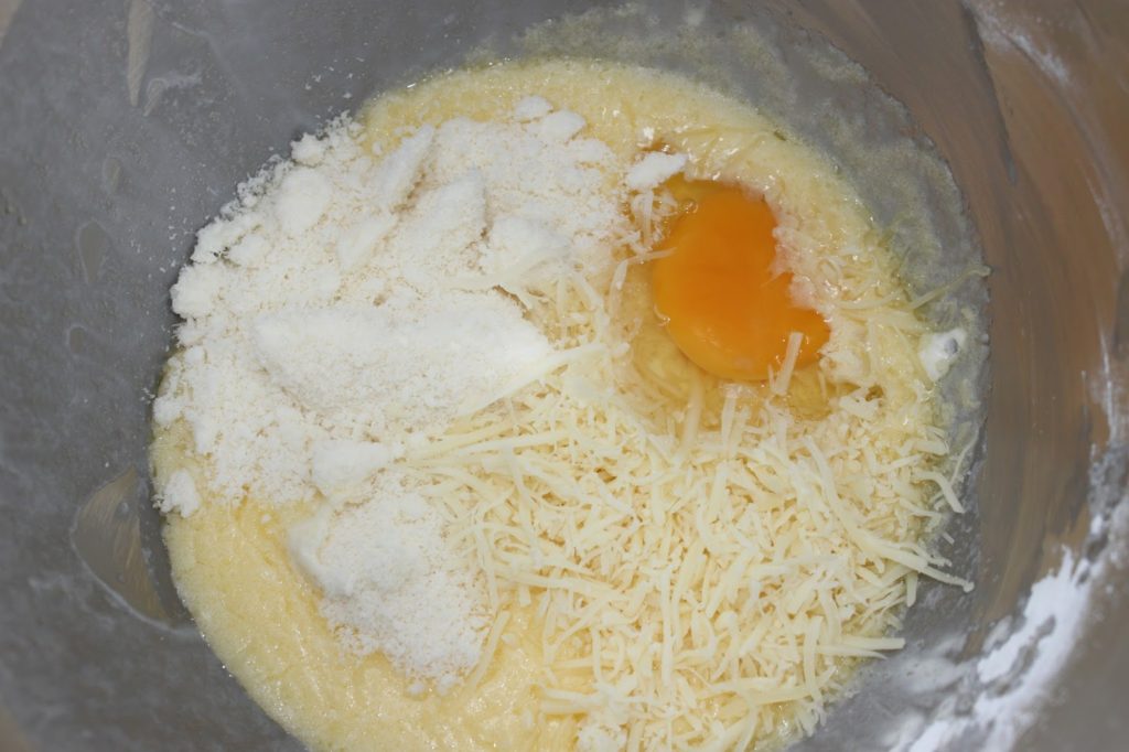 - Ajoutez l’œuf et les fromages et mélangez de nouveau.