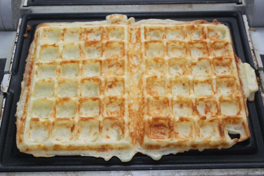 - Refermez le gaufrier puis retournez-le. On voit ici la pâte à mi-cuisson.