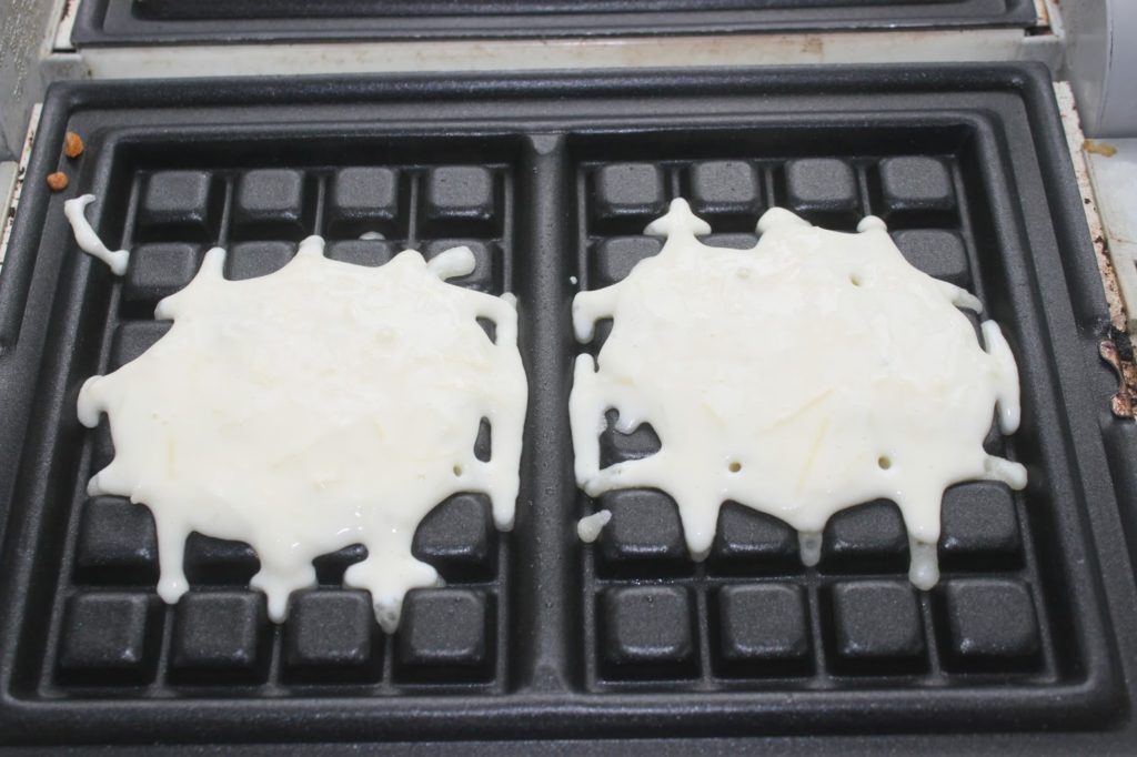 - Faites chauffer votre gaufrier puis versez deux cuillerées à soupe de pâte.