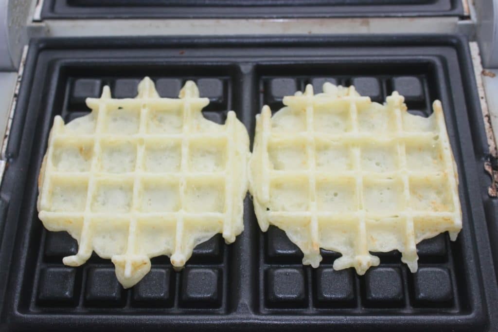 Refermez le gaufrier puis retournez-le. On voit ici la pâte à mi-cuisson.