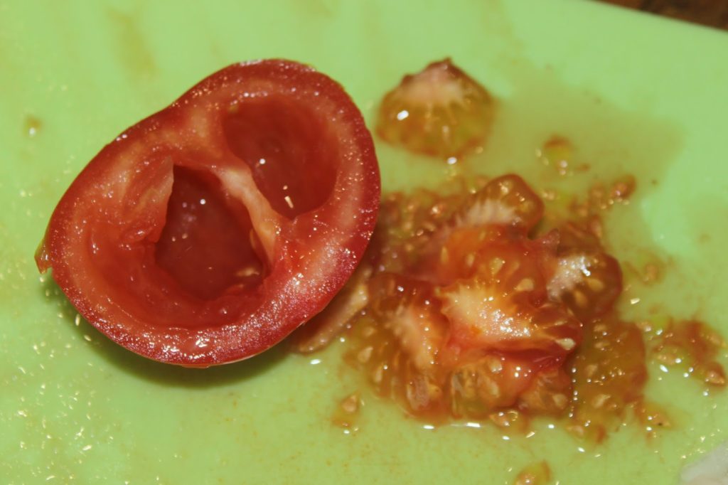 - Quand vous en êtes à la moitié du bouillon, ajoutez les morceaux de tomate.