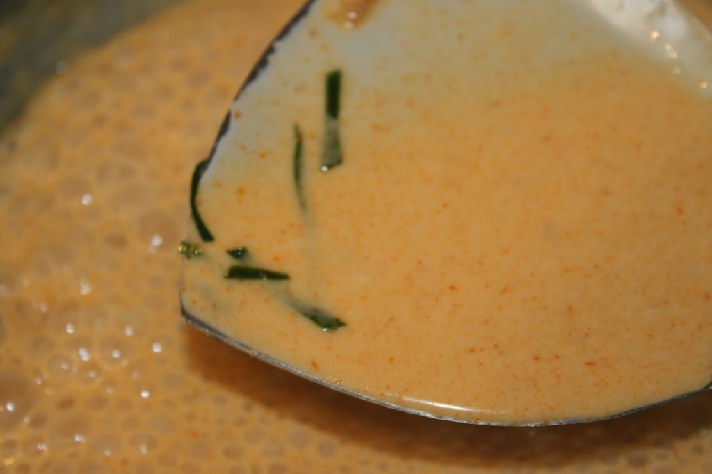 - Versez un tiers du lait de coco tout en mélangeant pour bien dissoudre le pâte.
