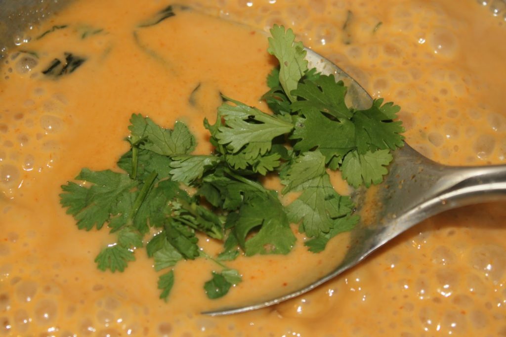 - Votre curry sera prêt quand le gras commencera à apparaitre sur les côtés. Regardez bien la photo, on voit la graisse du lait de coco qui commence à perler sur le bord. C’est signe que vous pouvez passer à table ! Il aura la consistance parfaite: bien crémeuse et super savoureuse !