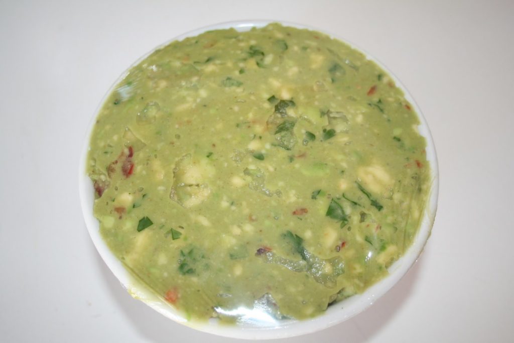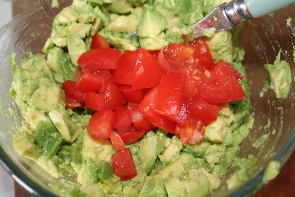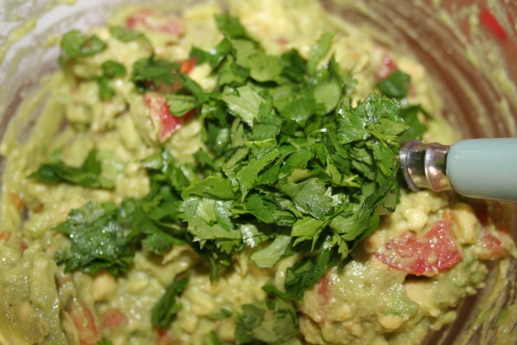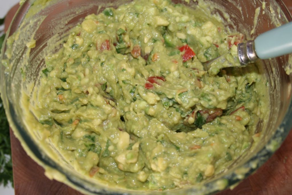 - Mélanger le tout. Saler et goûter pour ajuster les ingrédients. Si vraiment on ne peut pas faire sans, ajouter une petite cuillerée à café de cumin en poudre (personnellement je peux le faire avec des petits avocats, mais si j’achète un avocat géant, le goût est tellement délicieux que le cumin n’a rien à faire dans la recette!).