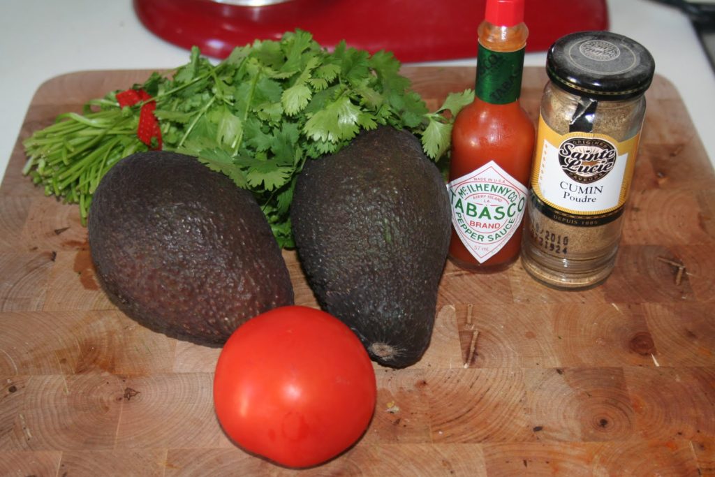 Il est important de trouver des avocats vraiment mûrs! Le mieux étant bien sûr de trouver un gros avocat typique d’Amérique centrale ou du sud! On peut trouver celui-ci chez Tang frères par exemple mais je sais qu’on les trouve de plus en plus facilement dans les très grands supermarchés. Par contre il n’en faudra qu’un et peut être même mettre un peu plus des autres ingrédients (comme 2 tomates…)!