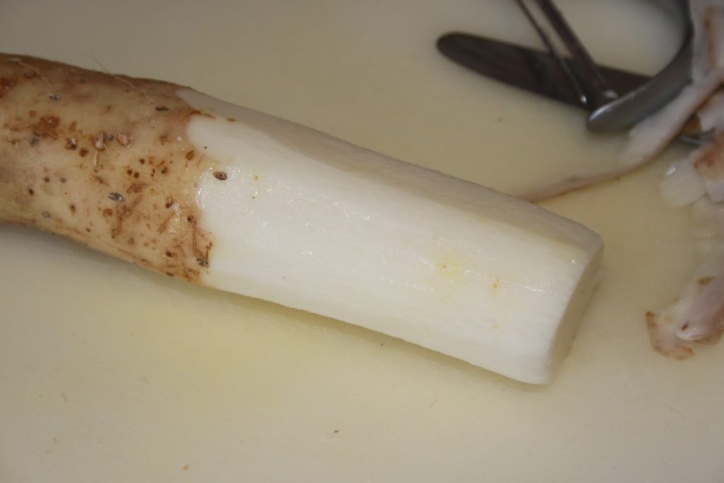 - Une racine peu appétissante au premier abord car sa chair est visqueuse. Enlever la peau avec un économe (pour pour des carottes).