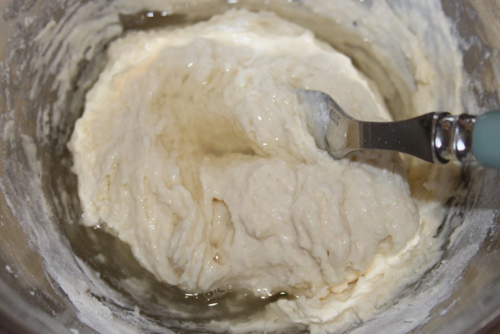 - On obtient une pâte assez épaisse. Ajouter les oeufs.