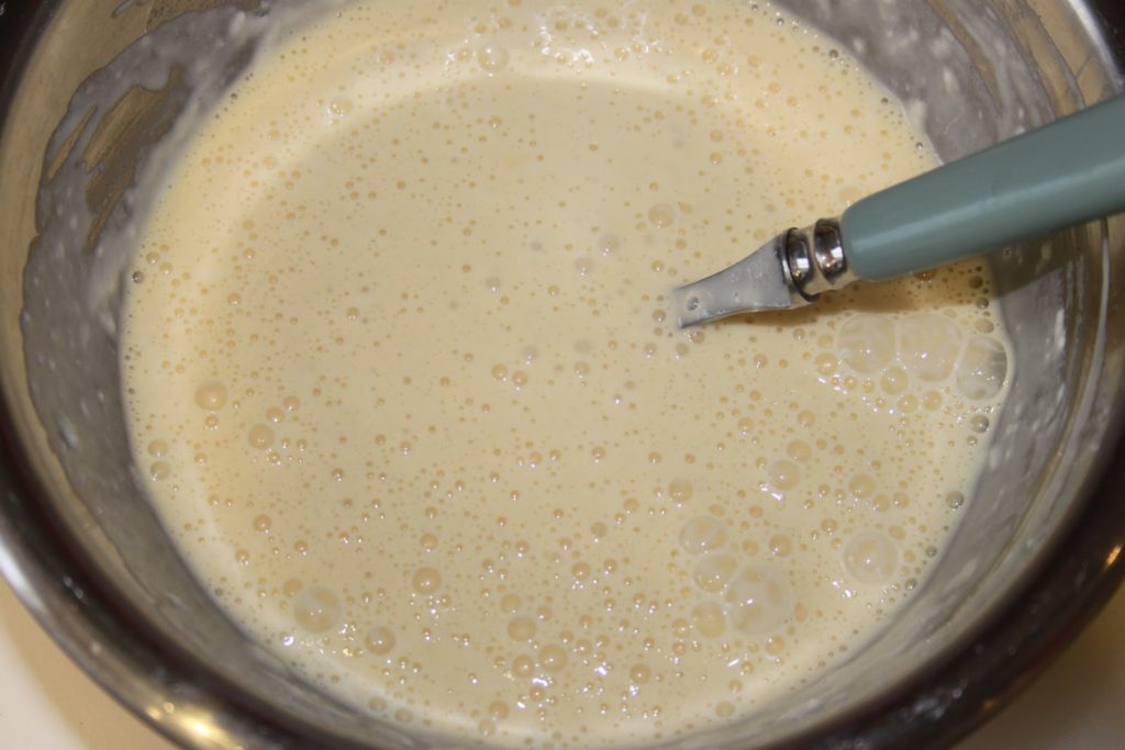 - Bien mélanger jusqu’à ne plus avoir de grumeaux puis reverser dans la casserole.