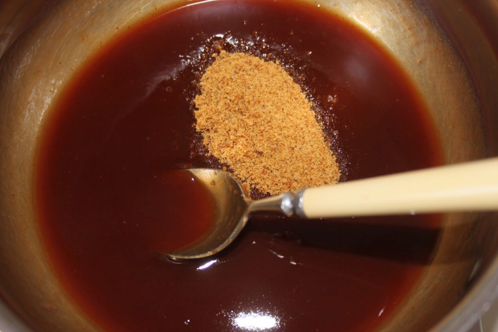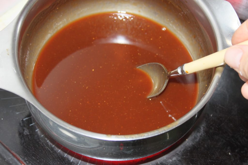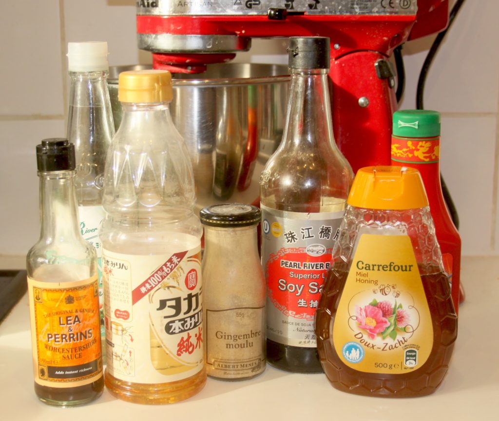 - Commencer par préparer la sauce. J’ai mis au point ce dosage en mettant un peu de sauce achetée au Japon dans un bol puis en mettant de tout (en ayant pris soin de peser avant et après les ingrédients) jusqu’à ne plus vraiment distinguer ma sauce de celle achetée.