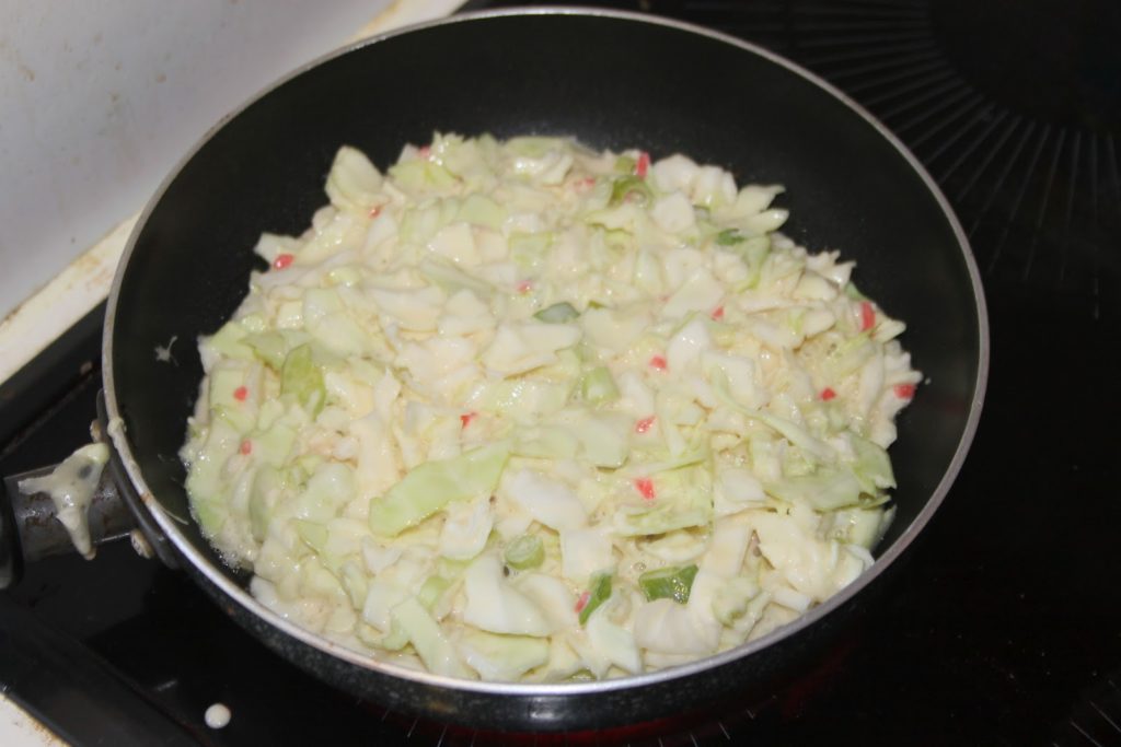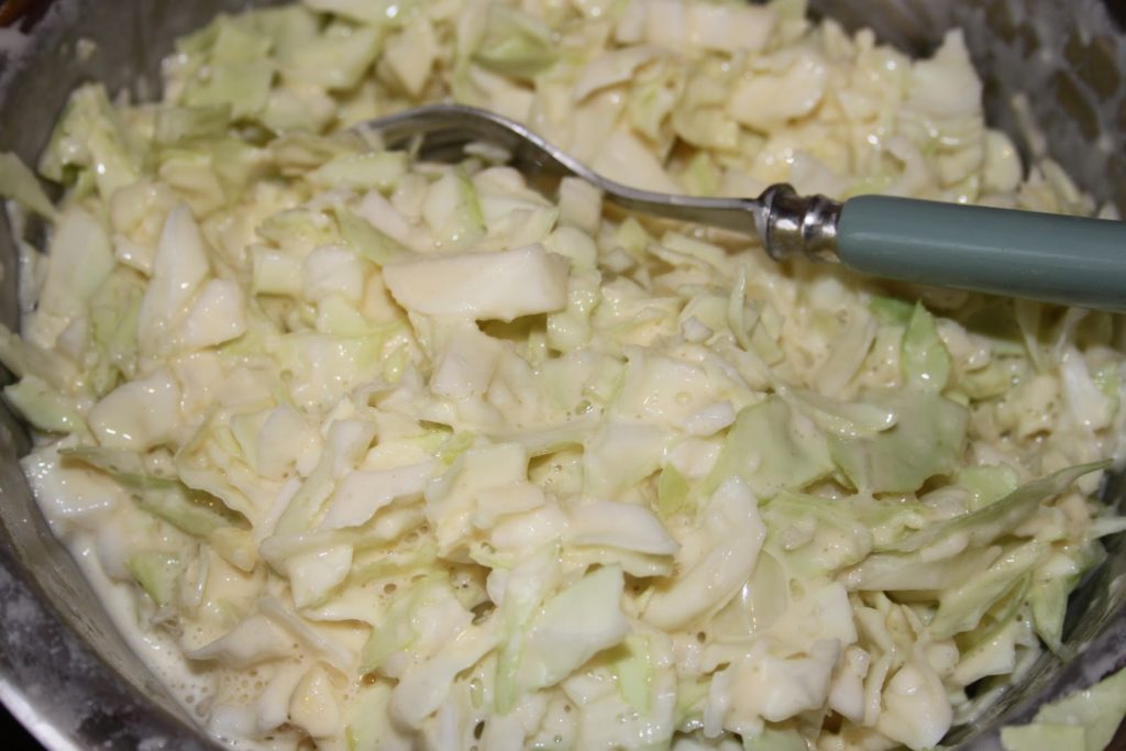 - Voici le chou japonais. Avec un chou blanc normal bien de chez nous, il faudra le couper d’abord en tranches puis le blanchir (le faire cuire rapidement) 2-3 minutes ) dans de l’eau bouillante.Sur la photo il y a un demi chou alors que j’ai mis dans la recette un tiers. Je n’ai en effet pas mis tout ce qu’il y a sur la photo mais bien un tiers (donc deux tiers du demi chou, on suit toujours??). Mais on peut en mettre un peu plus ou un peu moins… Après tout c’est okonomi!