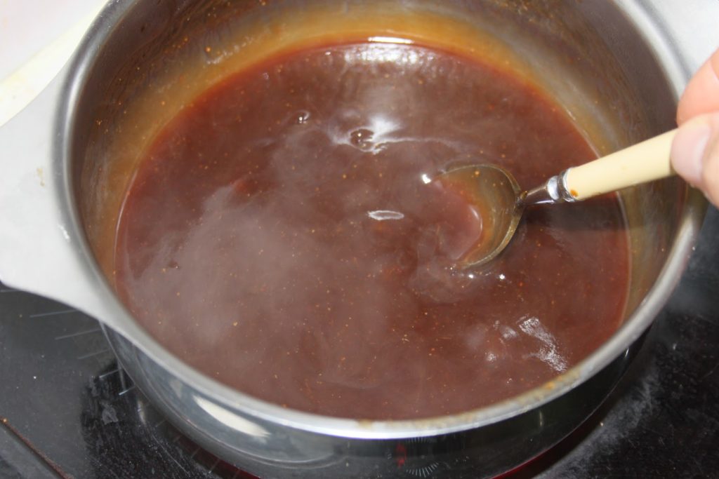- Mettre tous les ingrédients dans une petit casserole, sauf la maïzena et l’huile.