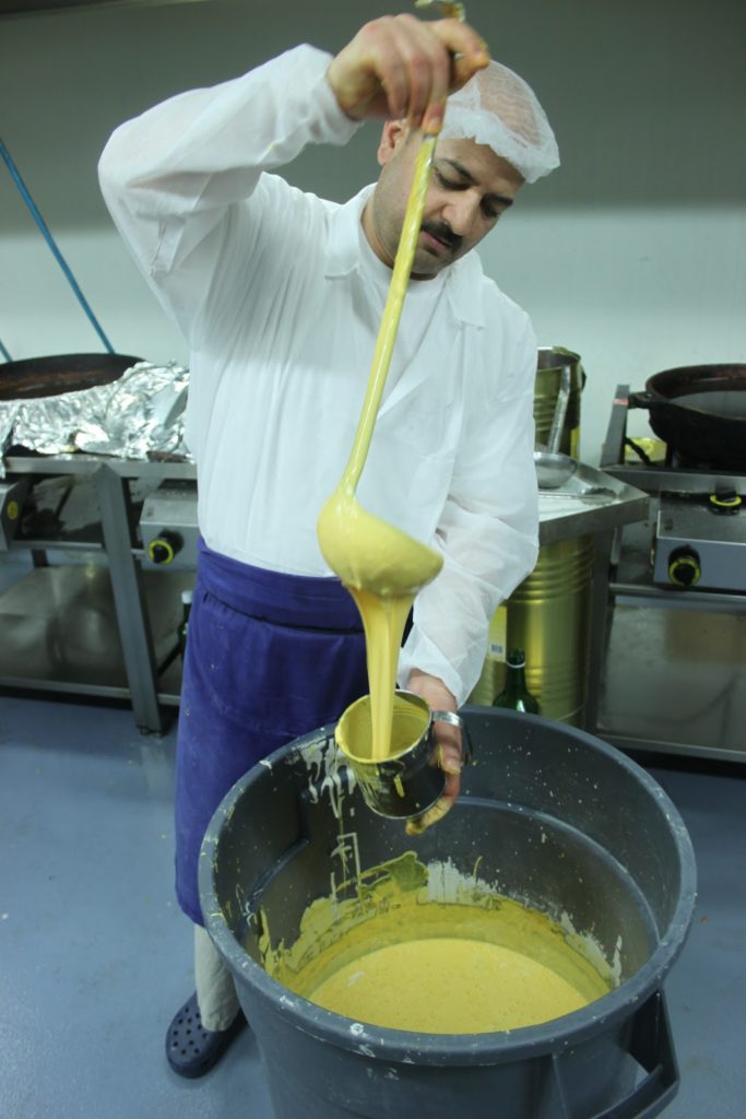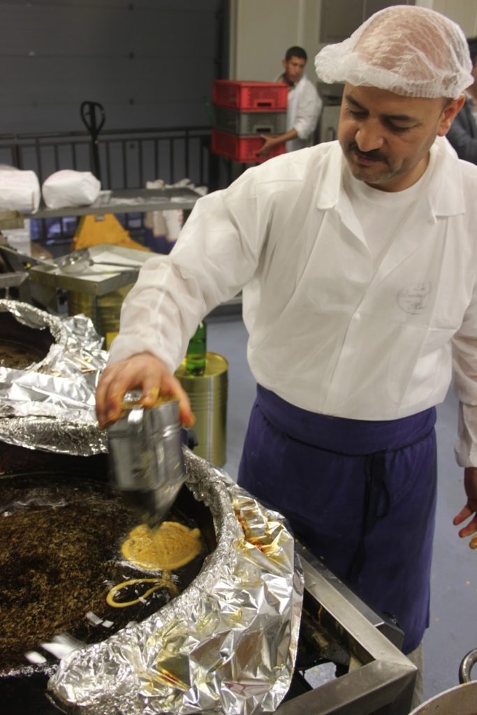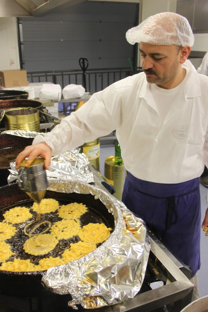 Hassen verse ensuite la pâte dans la friteuse dans un mouvement parfait qui parait très simple et pourtant… Il s’agit d’un vrai métier et il nous le prouve avec brio!