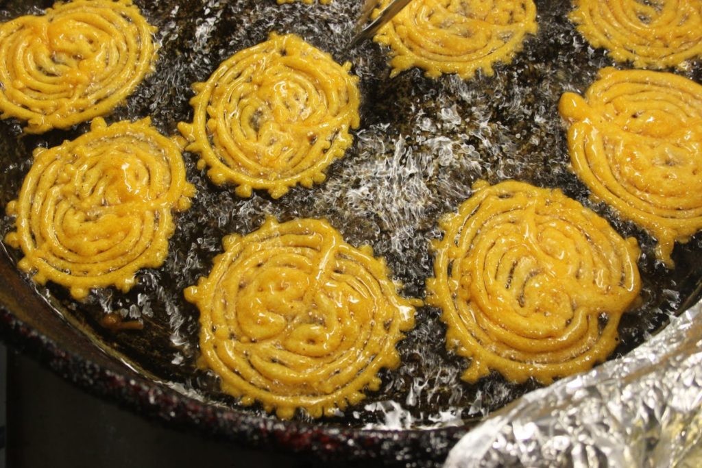 On laisse ensuite frire les zlabias quelques minutes avant de les séparer les unes des autres puis de les retourner.