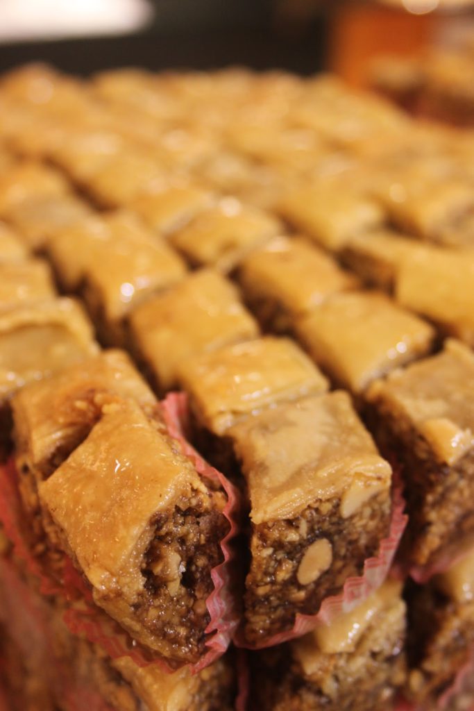 Vous trouverez de délicieux baklawas, aux noix, aux pistaches, aux noisettes etc…