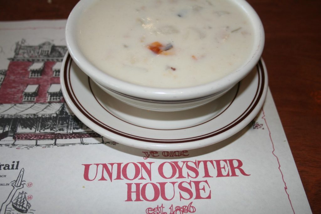 « L’Union Oyster House est le plus vieux restaurant de Boston et le restaurant ouvert sans interruption le plus ancien des États-Unis ses portes ont été ouvertes aux clients pour le dîner sans interruption depuis 1826. »