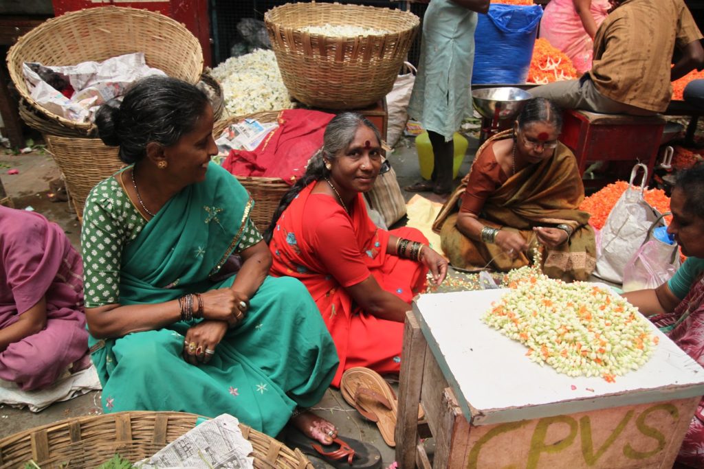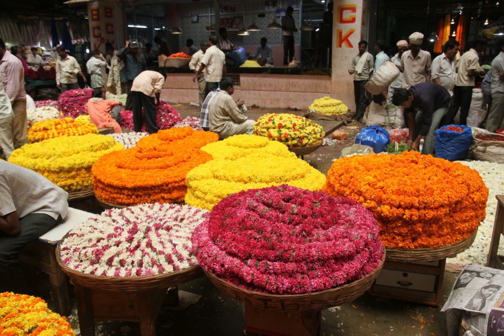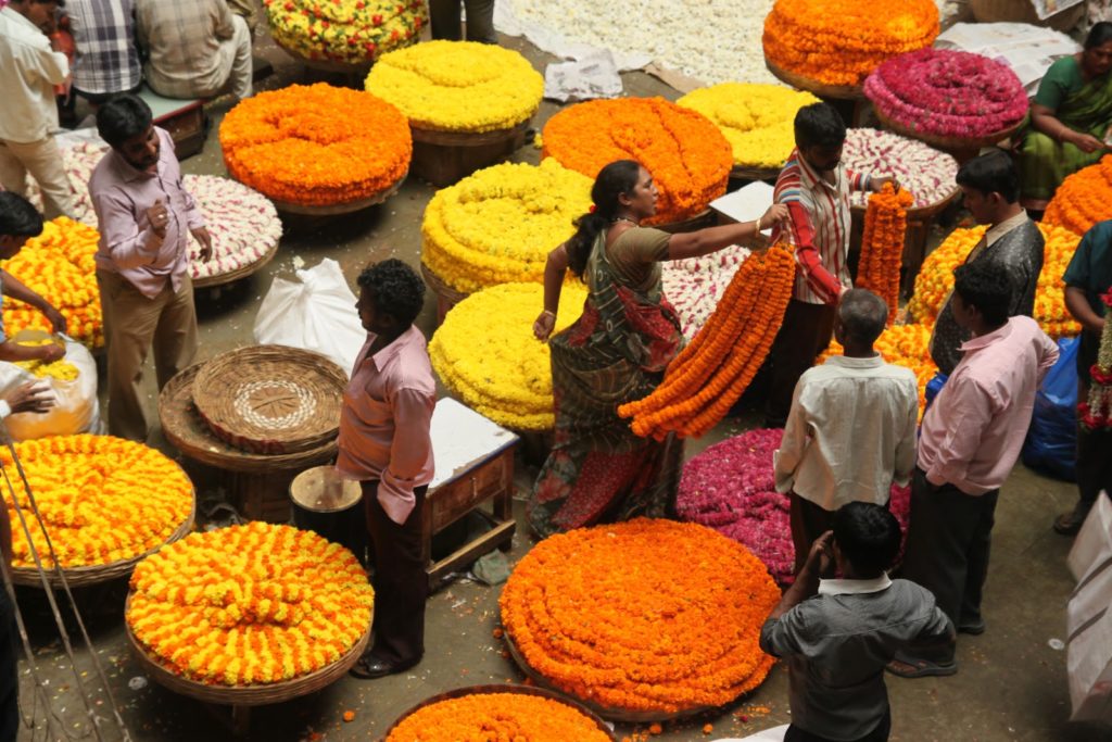 Au centre du marché se trouve un espace dédié aux fleurs que l’on offrira aux icônes sacrées.