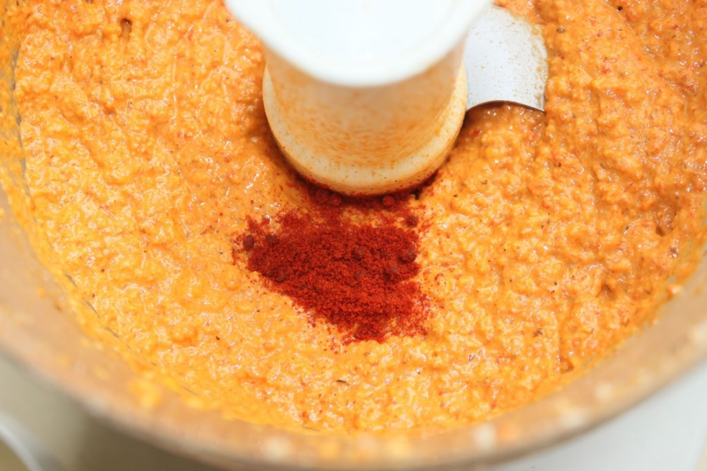 - Réduisez le tout en purée et ajoutez le paprika. Salez à votre goût.