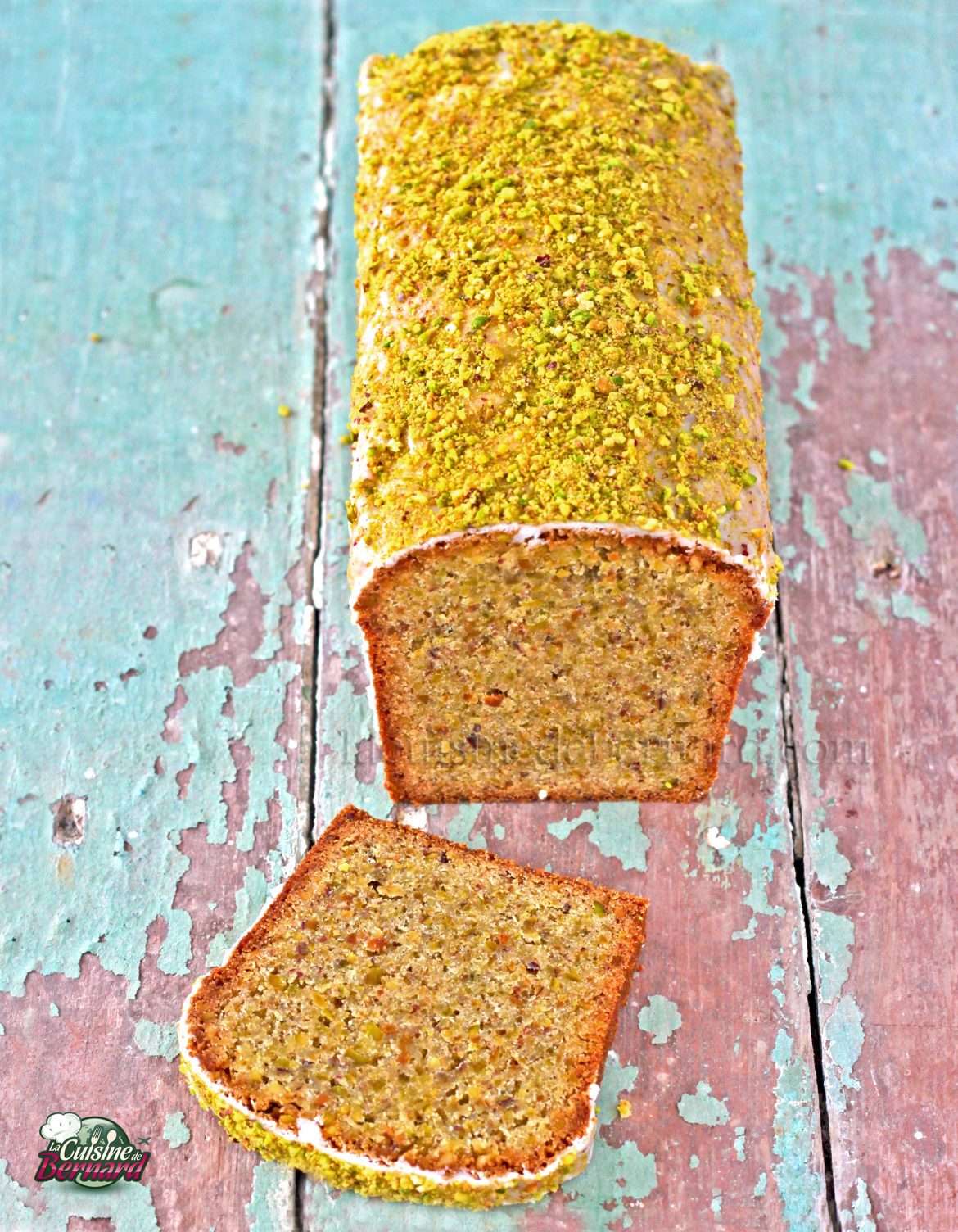 Je vous propose cette fois sur mon blog de cuisine, un cake aux pistaches et au citron. Sa texture est à la fois riche et fondante, moelleuse et dense. Je mets un peu de zeste de citron dans la pâte et d’arôme amande amère. Cela donne une saveur particulière qui vient souligner la pistache. Pour terminer, un fin glaçage recouvert de pistaches grillées en poudre qui conservera le moelleux de ce cake !