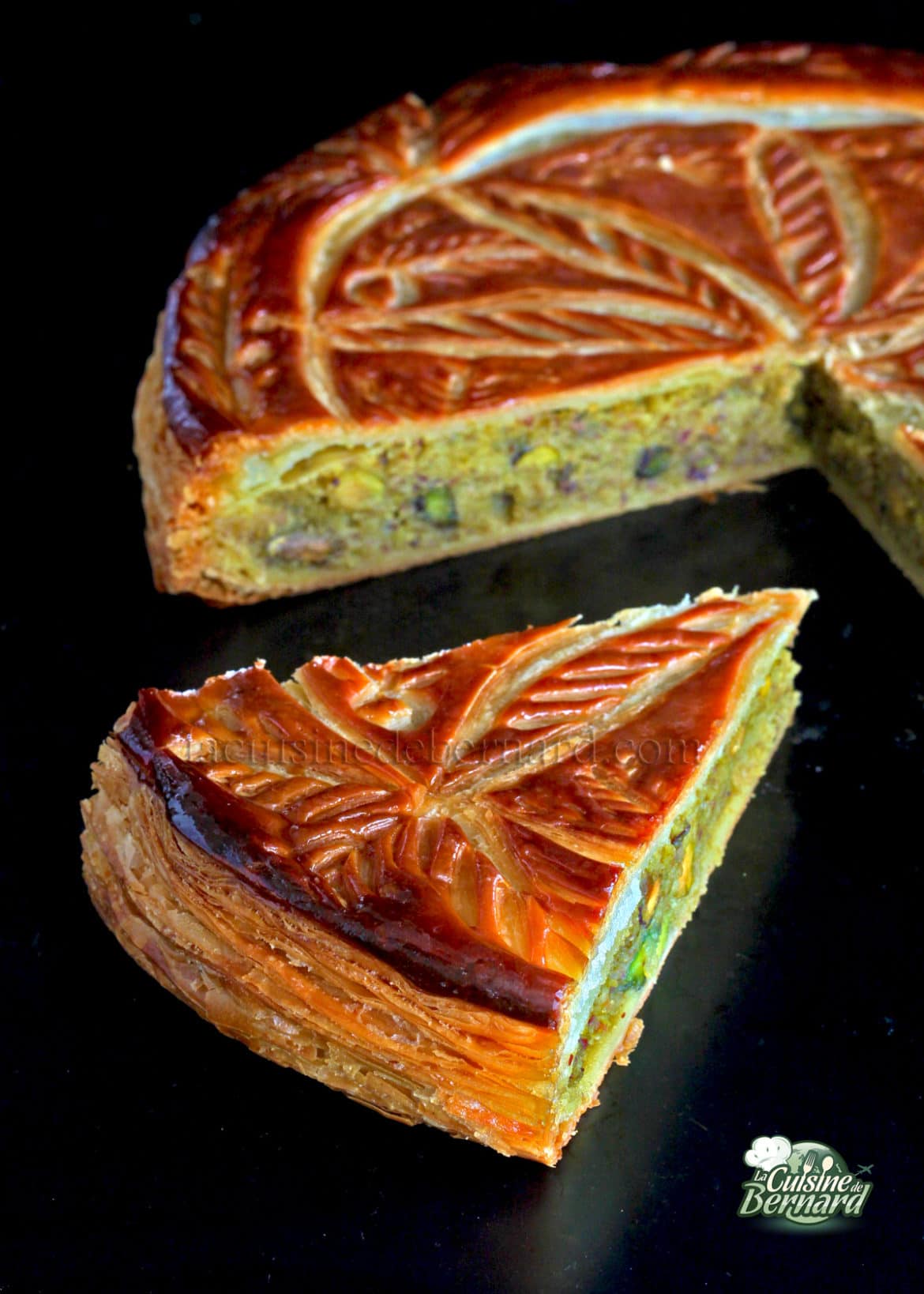 Tous les ans j’essaie de vous proposer une nouvelle galette des rois. Cette fois-ci, je vous propose une version totalement décadente et délicieuse, aux pistaches et à la fleur d’oranger. Une petite bombe de saveurs et de textures. Surtout avec une pâte feuilletée inversée maison. J’en ai toujours d’avance que je mets sous vide après mes ateliers pâte feuilletée. Je mets plein de pistaches entières et elles se marient à la perfection à la fleur d’oranger.