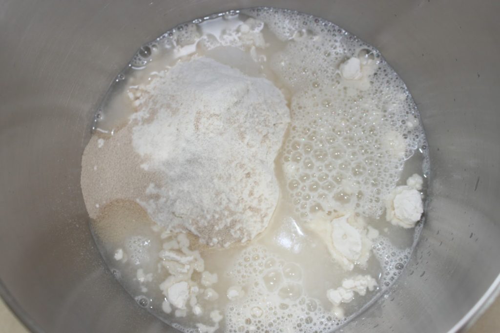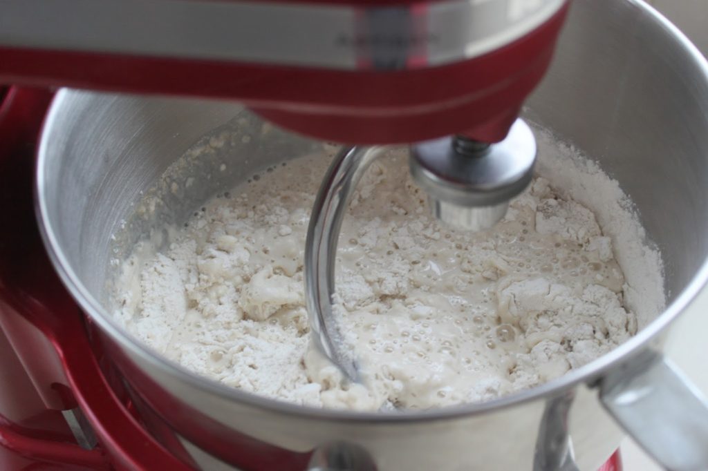 - Versez la farine, le sel et la levure dans la cuve d’un robot. Mettez le sel d’un côté et la levure de l’autre, pour qu’ils ne ne touchent pas.
