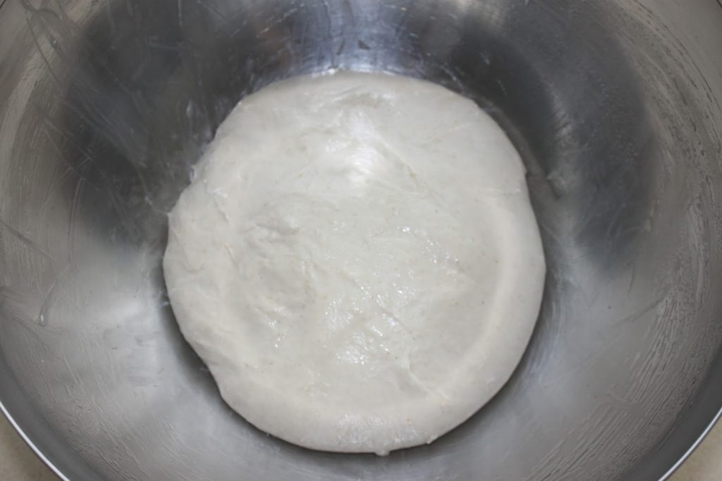 Mettez un film étirable directement au contact de la pâte (pour éviter son dessèchement) puis mettez au frais pour la nuit, ou au moins 5 ou 6 heures. Cela va permettre de ne plus avoir le goût de la levure dans la pâte et d’améliorer sa saveur. L’idéal est de faire sa pâte le soir, de la laisser pousser 1h30 comme prévu, de la « dégazer » puis de la mettre au frais pour la nuit pour cuire tout le lendemain matin.