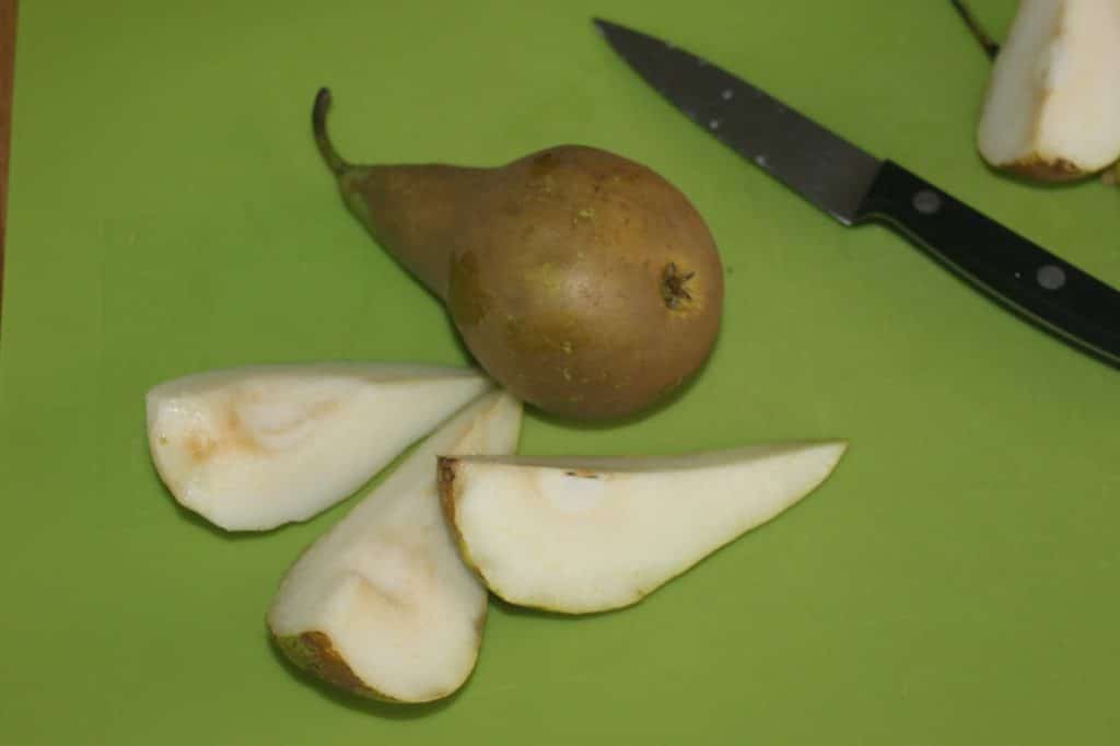 - Épluchez et coupez les poires en quartiers.