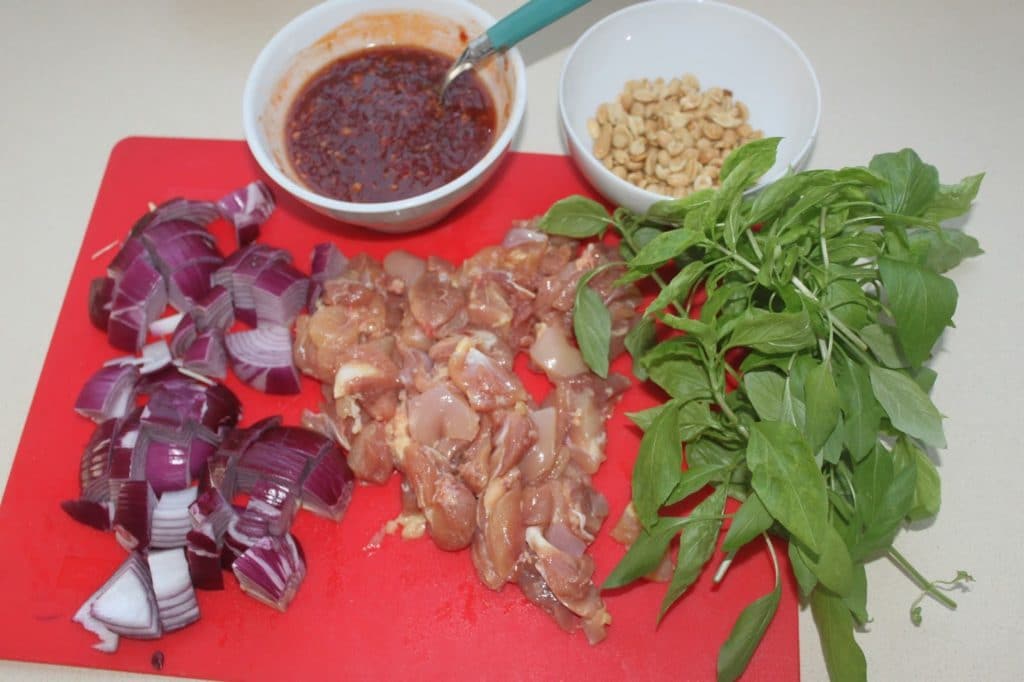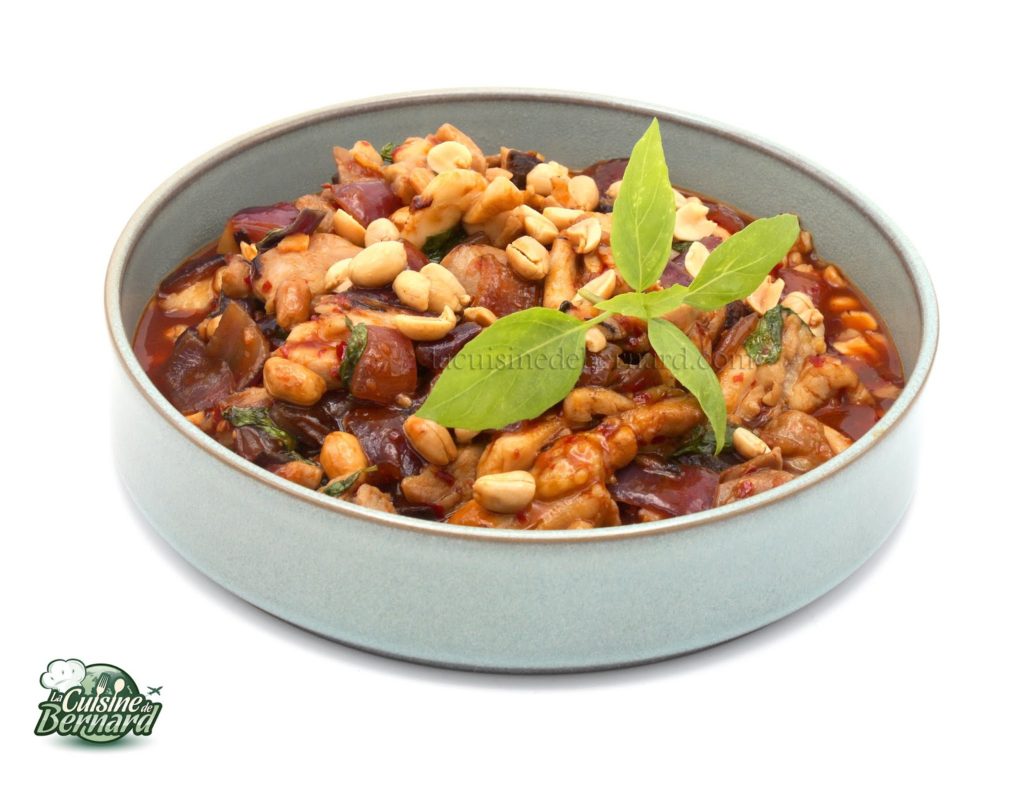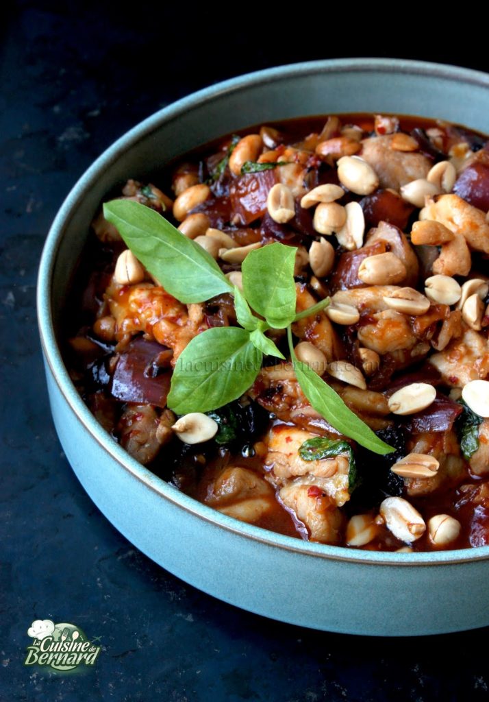 Poulet au piment, basilic thaï et cacahuètes