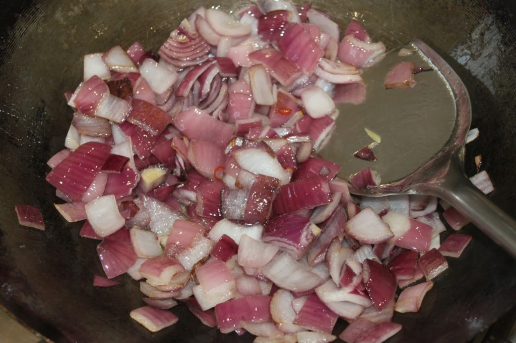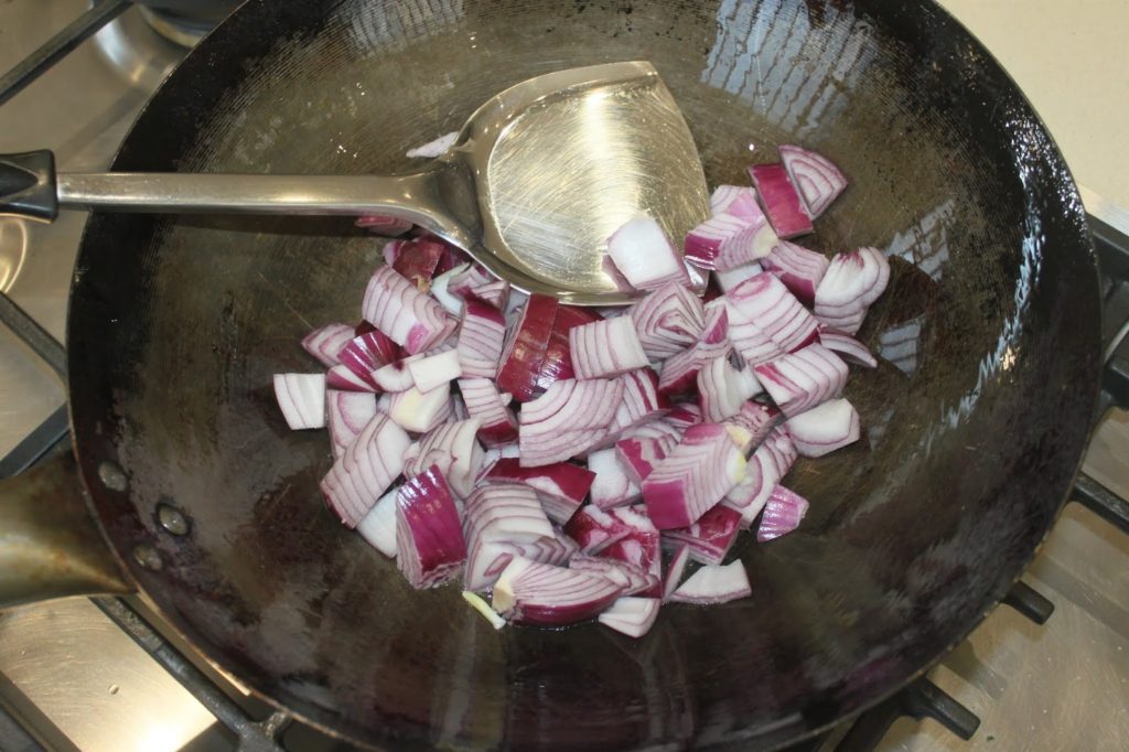 - Laissez cuire 2-3 minutes pour que l’oignon se colore un peu ou devienne un peu translucide.
